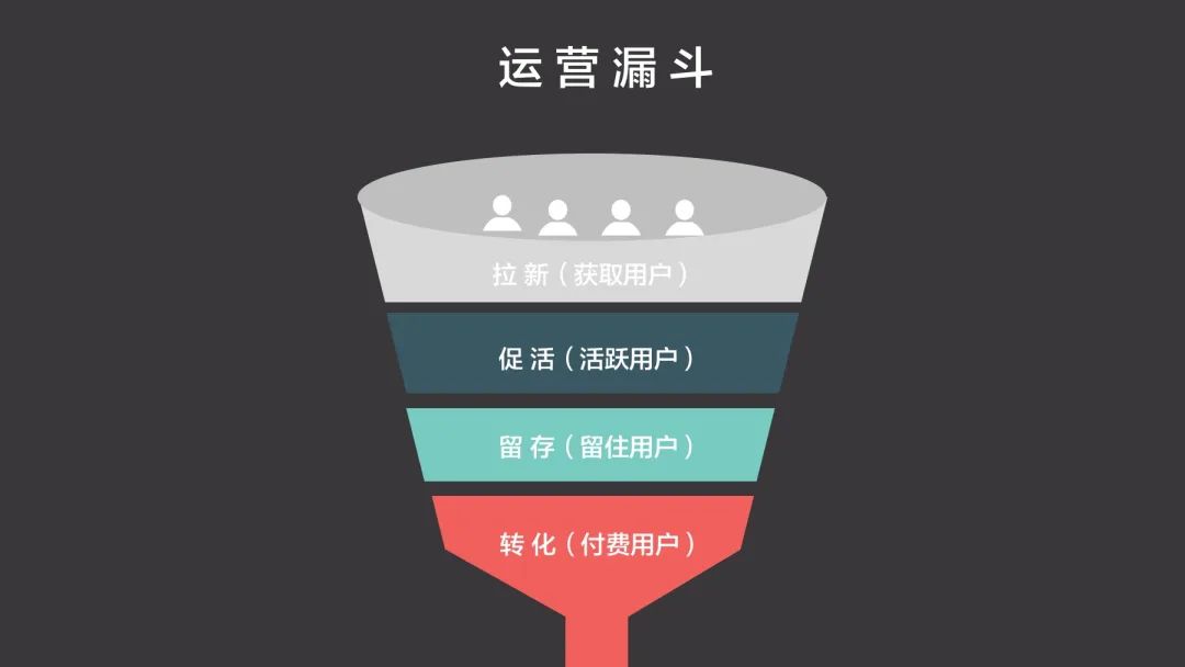 a. 拉新:通过内容营销让更多的目标用户看见,这其中就包括了图文、视频、音频等多种形式的内容。b. 促活:看见内容没有用,还需要把看见内容的读者或者观众变成潜在客户,因此需要设置引流点,留下福利,去获取潜在用户的联系方式,为转化做准备。c. 留存:用户注册了关注了,但是可能很快就忘记了,因此还需要通过内容和活动的方式,把用户留下。d. 转化:把用户留下以后,最后还是想要从这一些用户身上赚到钱,因此一般还需要通过社群运营等,把粉丝转化成付费用户。